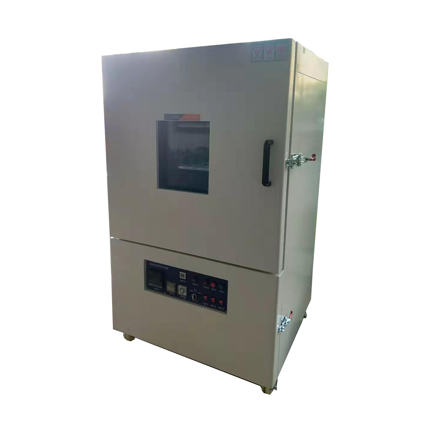 8、箱體結構為:上(shang)部分為產品室(shi),下部分為電控(kong)箱及真空泵安裝;